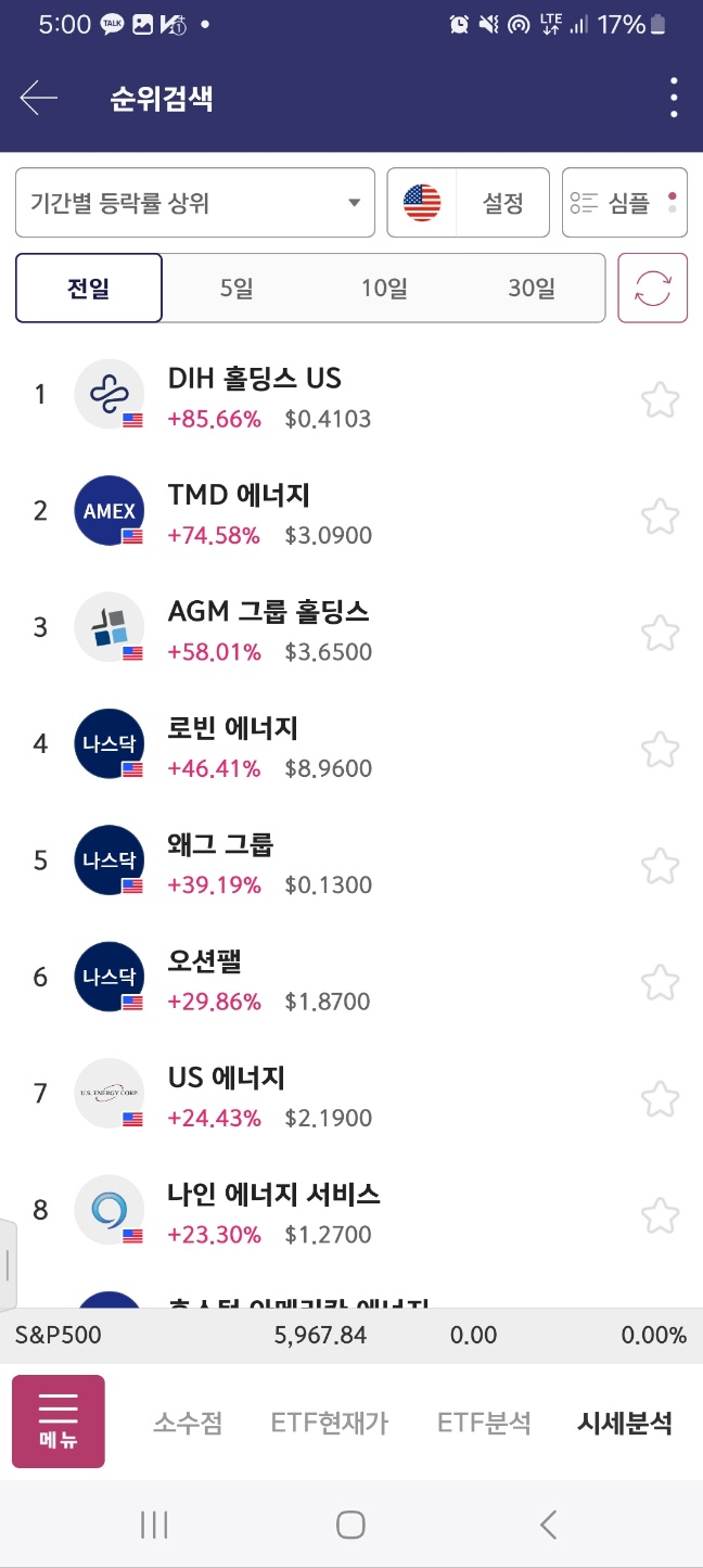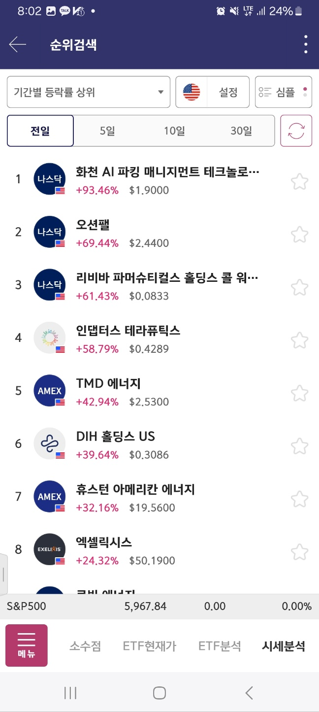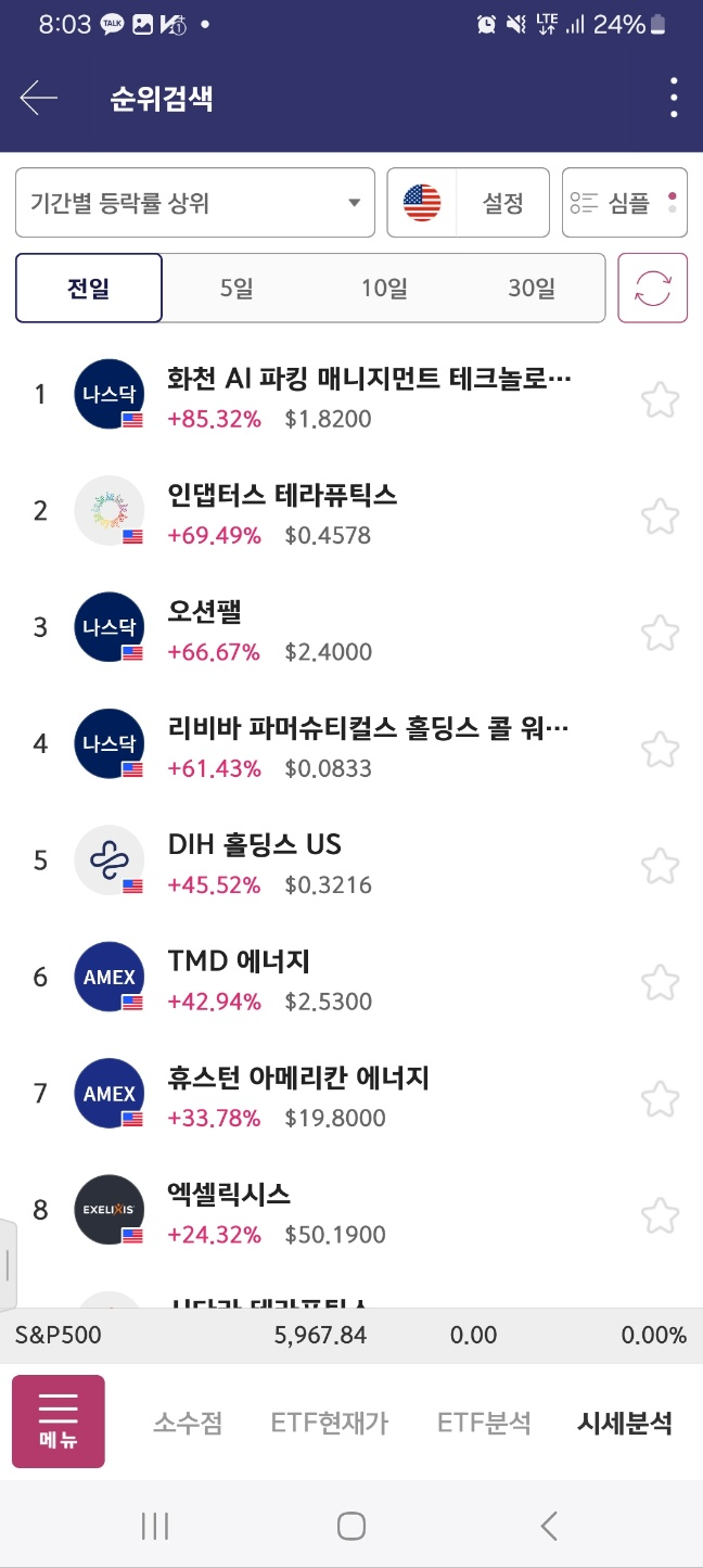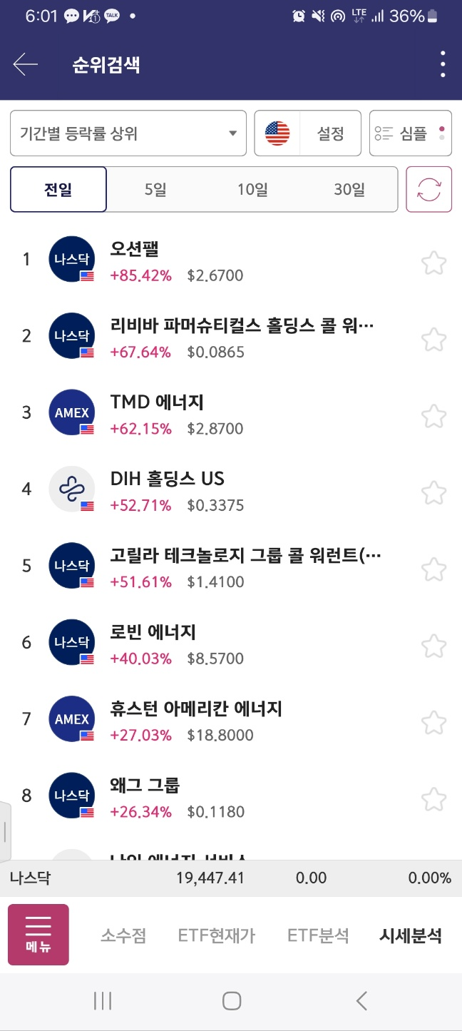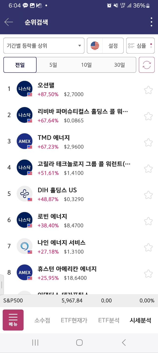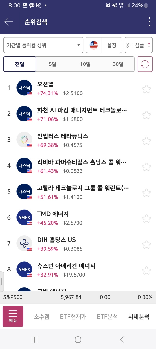 개장후변동 > 결과적으로 개장시 1등이 상승세이다.