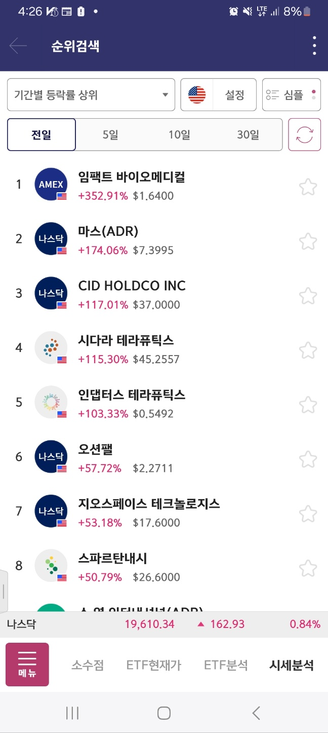 일단 8시정각에올라온종목은 없었다 / 그래서 늦게 올라온게 하나 있음 // 이것도 짧게 잡기