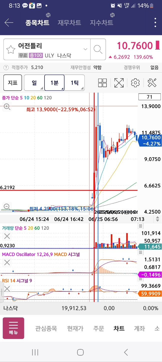 0800-0810-새롭게1위바뀌는경우/애매하면1분//유일한1위>rsi/macd매도시점