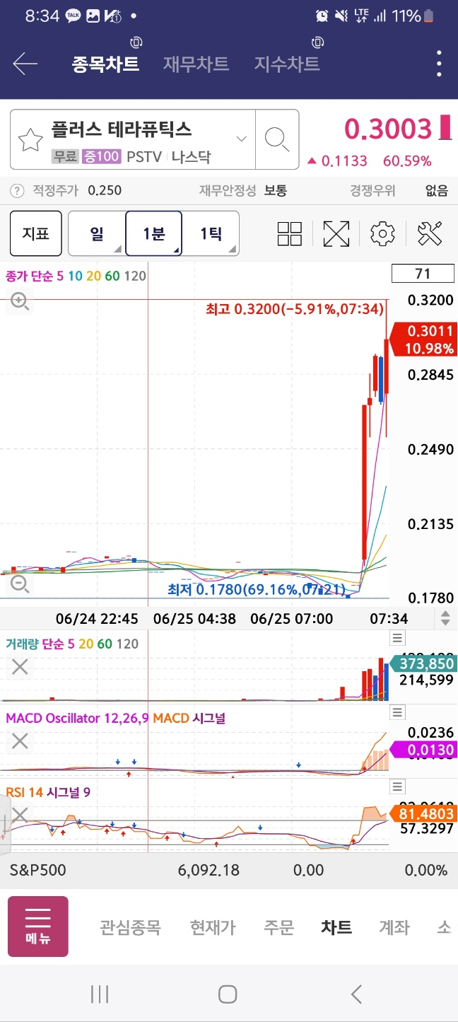 6시도눌려있는차트/전체적으로 올라오는것 없음/ 정각대비 2분정도 상승후마감.