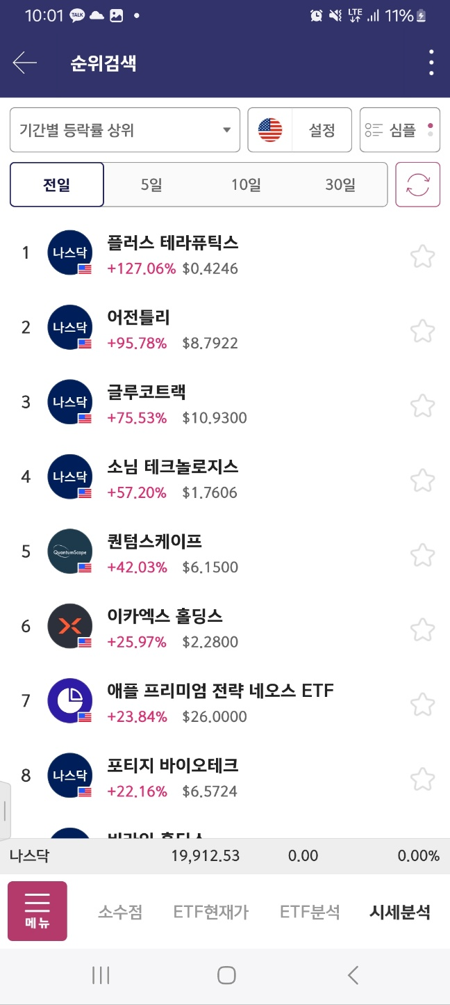 0800전에 올라와버림.그리고 해당 시점에서 다시 출발하기는 하지만 / 내가 어제로 돌아간다면 /건들지않을것임// 이미 출발한 종목이니까.