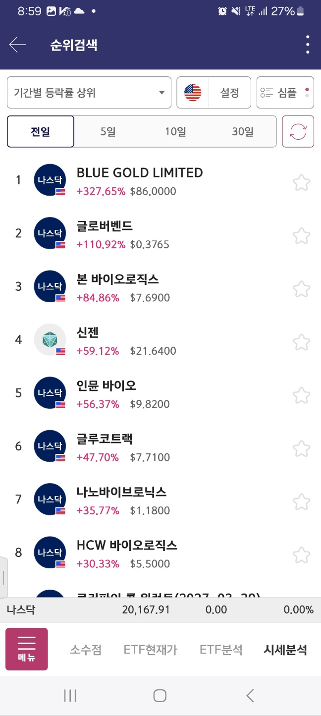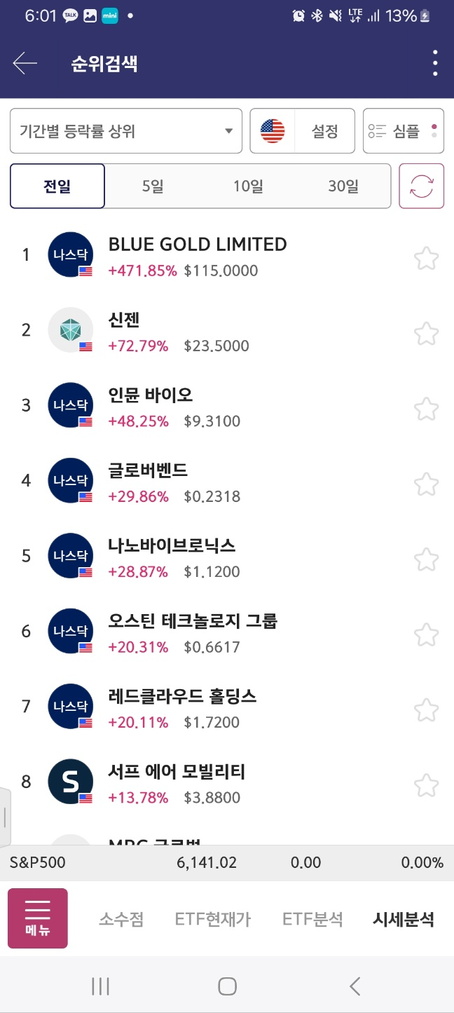 0600 전날 종목이 좀 올라오지만 특징적인 것 없음 1위로 올라온종목은 거래량이 너무 적어서 패스
