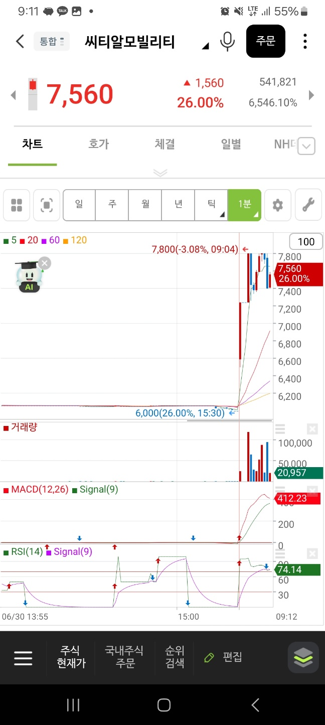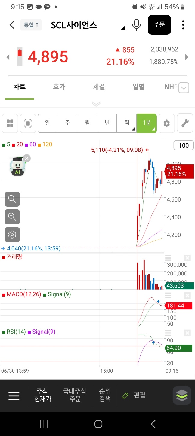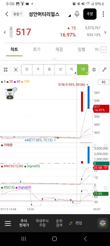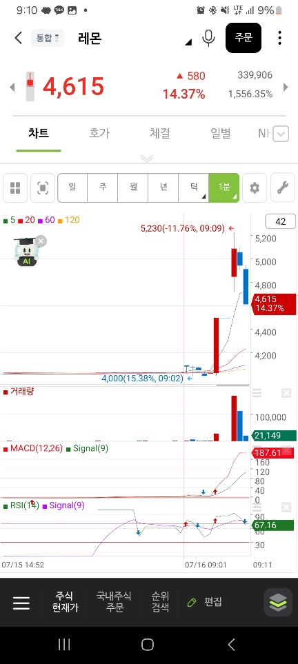 0703 중간에 올라오는 종목 잘 찾기 /오히려 2-3분정도에 들어간다.