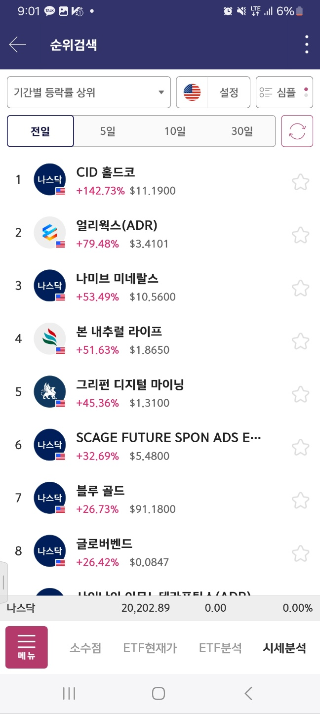 0900-1위 변동/1분