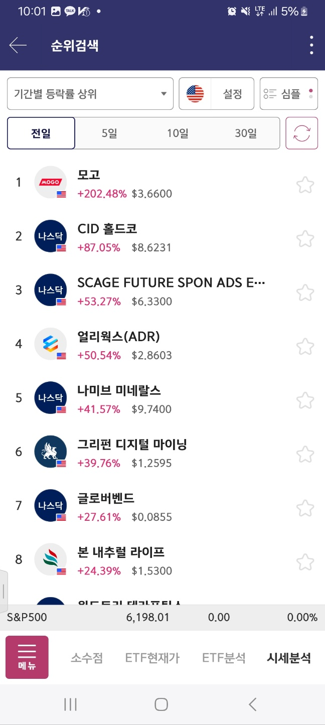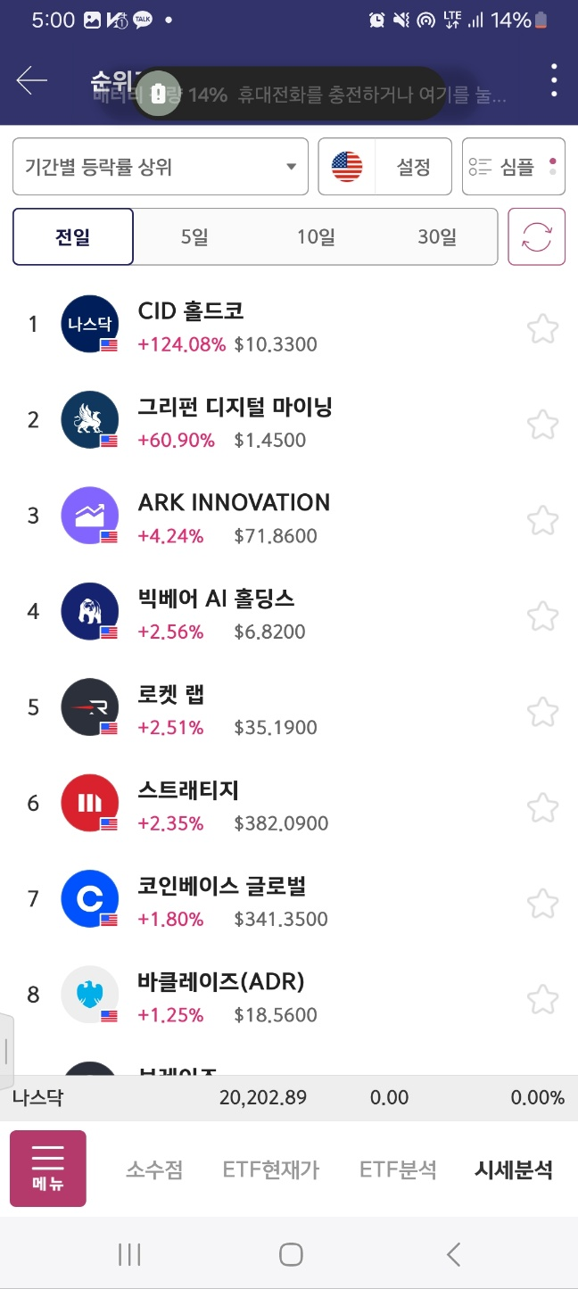 0500 유일한 1위 존재 2분까지는 상승한다.