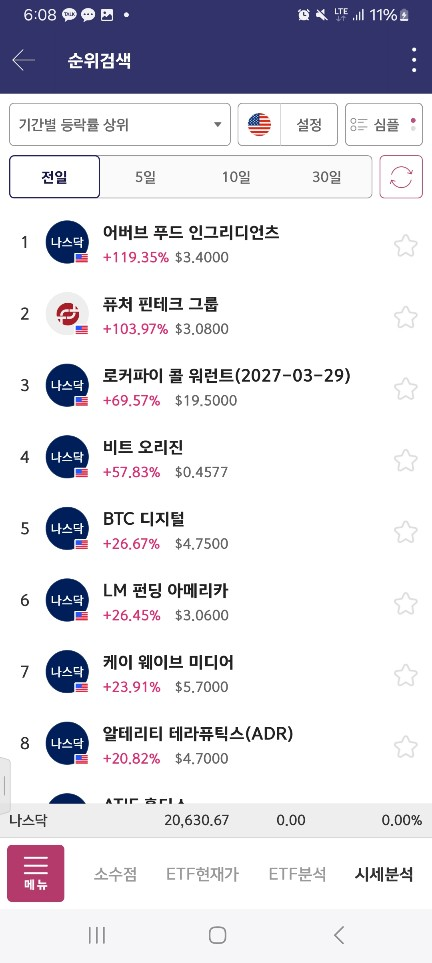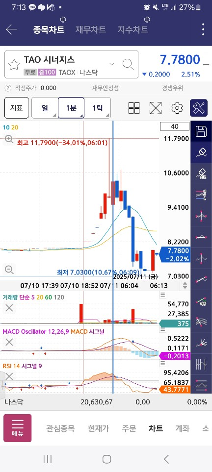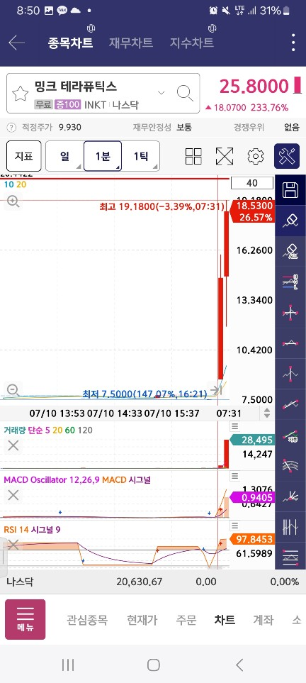 0800-0810-1위변동기다리기/1분(호가창 풀릴떄)/서서히올라오면,유일한1위>rsi/macd매도시점