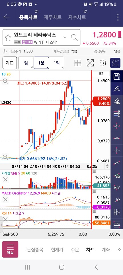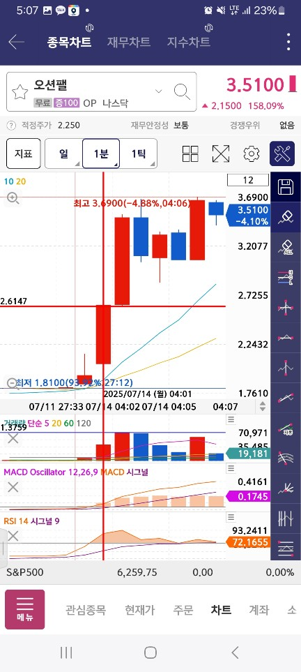 0500-0510-1위/상승패턴/1분(호가창 풀릴때)