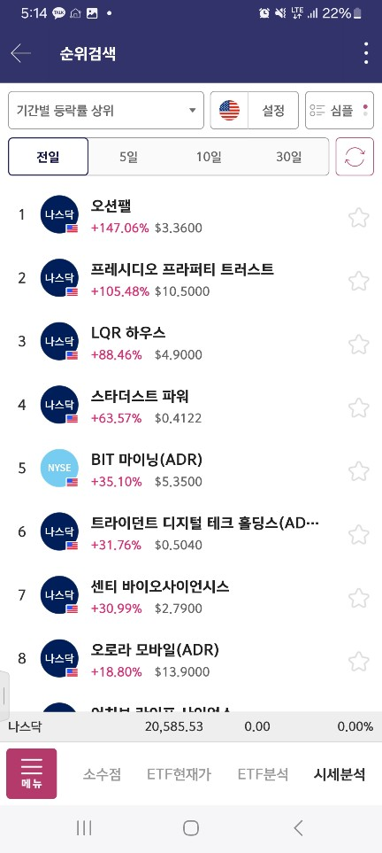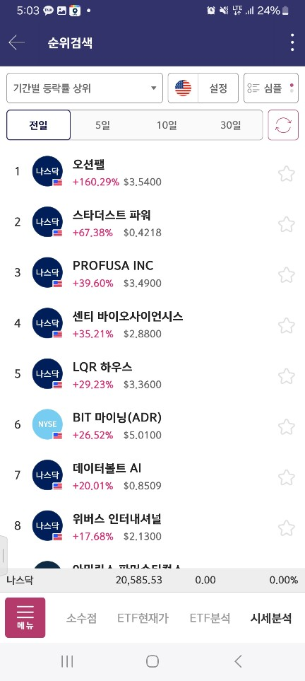 9분에 하나더올라온다. 이건 못뚫고 오션이 1위 유지