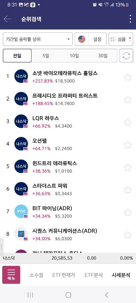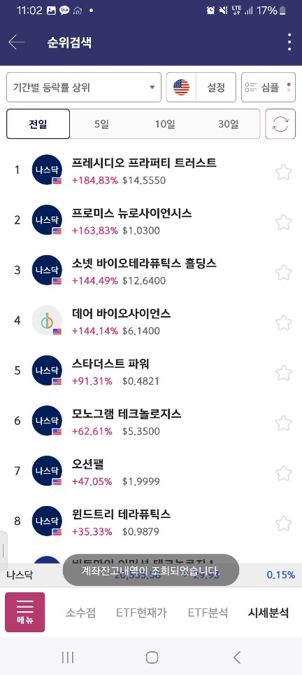 0800 - 0730 올린 종목이 다시 올라감 / 새로운 종목은 없었음 / 이 구간에서 2배 올림