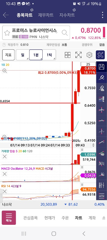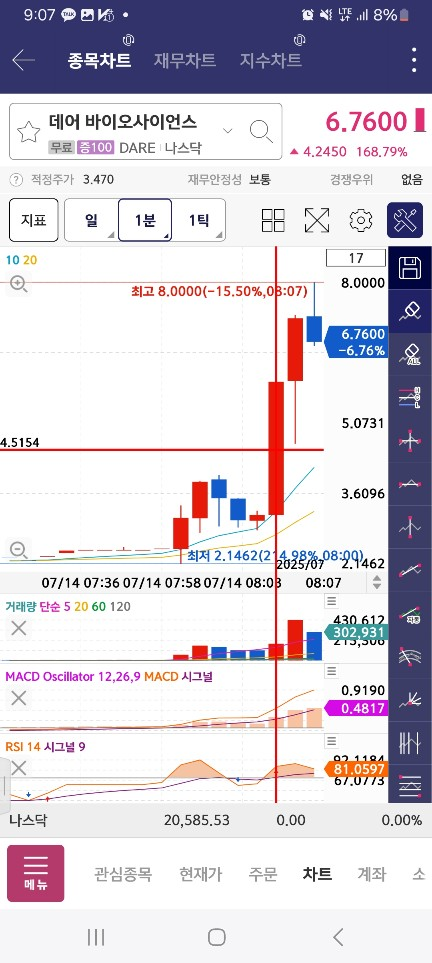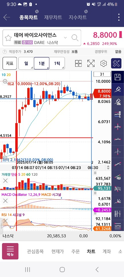0800-0810-1위변동기다리기/1분(호가창 풀릴떄)/서서히올라오면,유일한1위>rsi/macd매도시점