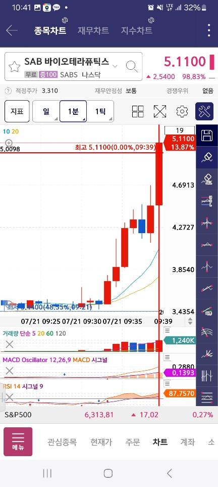 0500- 60퍼대/유일함/거래량/상승출발 - 매수ok - 2번째양봉에서 out (100프로 이상으로 결과적으로는 갔다)