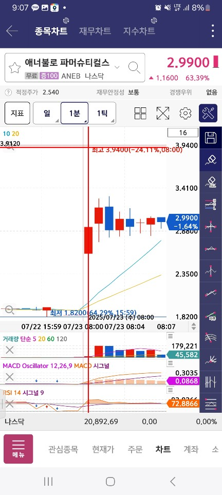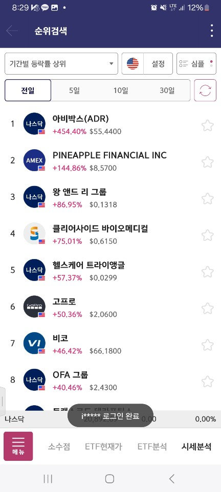 8시 종목 / 이날은 위를 막아서 60-100 이런 종목은 기대하기 어렵고 수익나면 짧게짧게 팔아야했다.