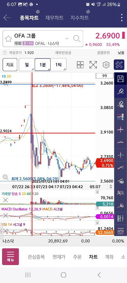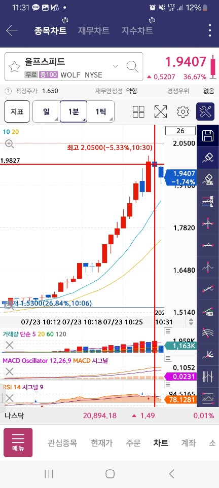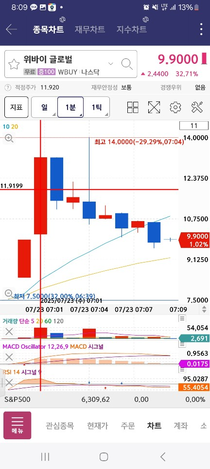 개장하고 60퍼대에서 발견하고 / 거래량 충분해서 들어가본 종목인데 / 해당 지점에서 바로맞음