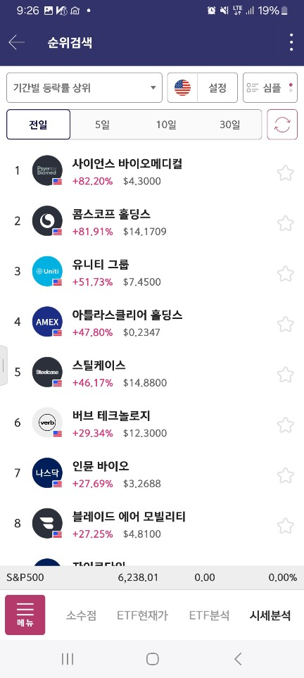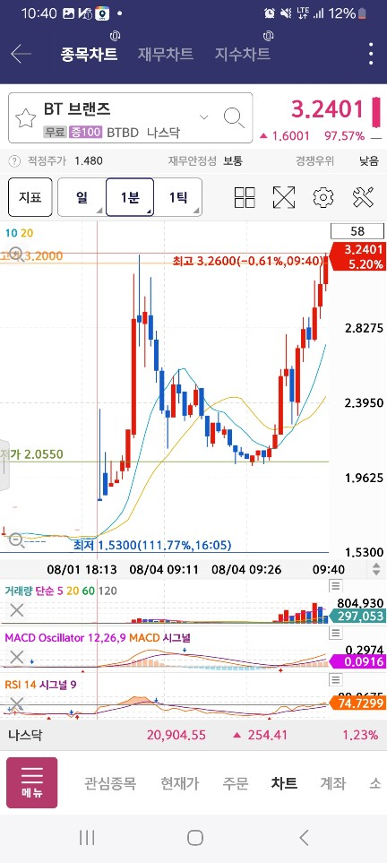 10시 종목 / 좀 늦게 오르기 시작 / 이렇게 개장하고나서부터 다시 올라감 / 개장 전에 한번 치고 흘렸다가 / 개장하고 물량들어오면서 올림