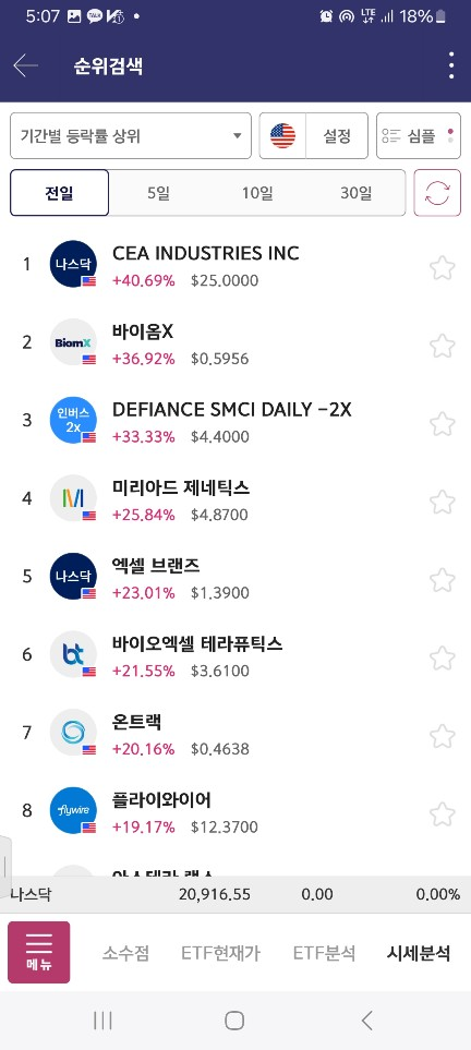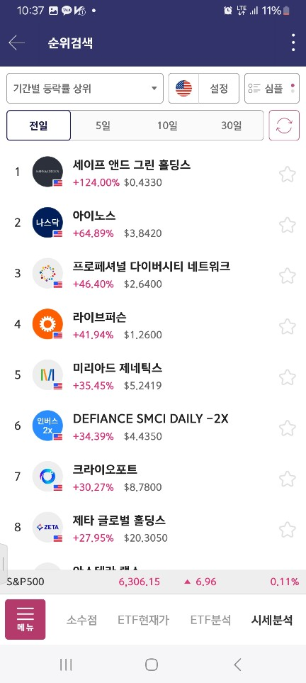일단 특이적으로 높은 종목이 없는 날 / 새로 올라온게 세이프