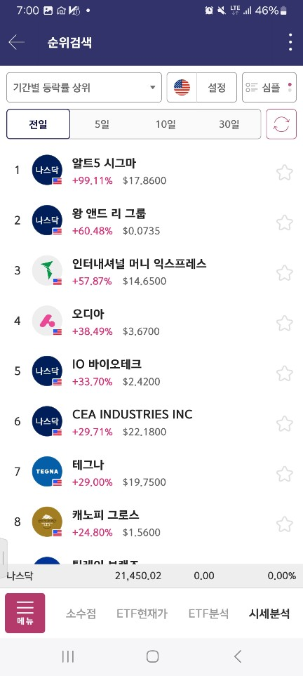 개장하고 올라가는 종목