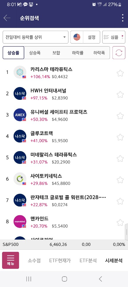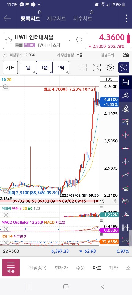 개장 후 상황을 보면 일단 hwh가 올라간다 / 이것도전날 4시 이후 오른 종목에 해당됨