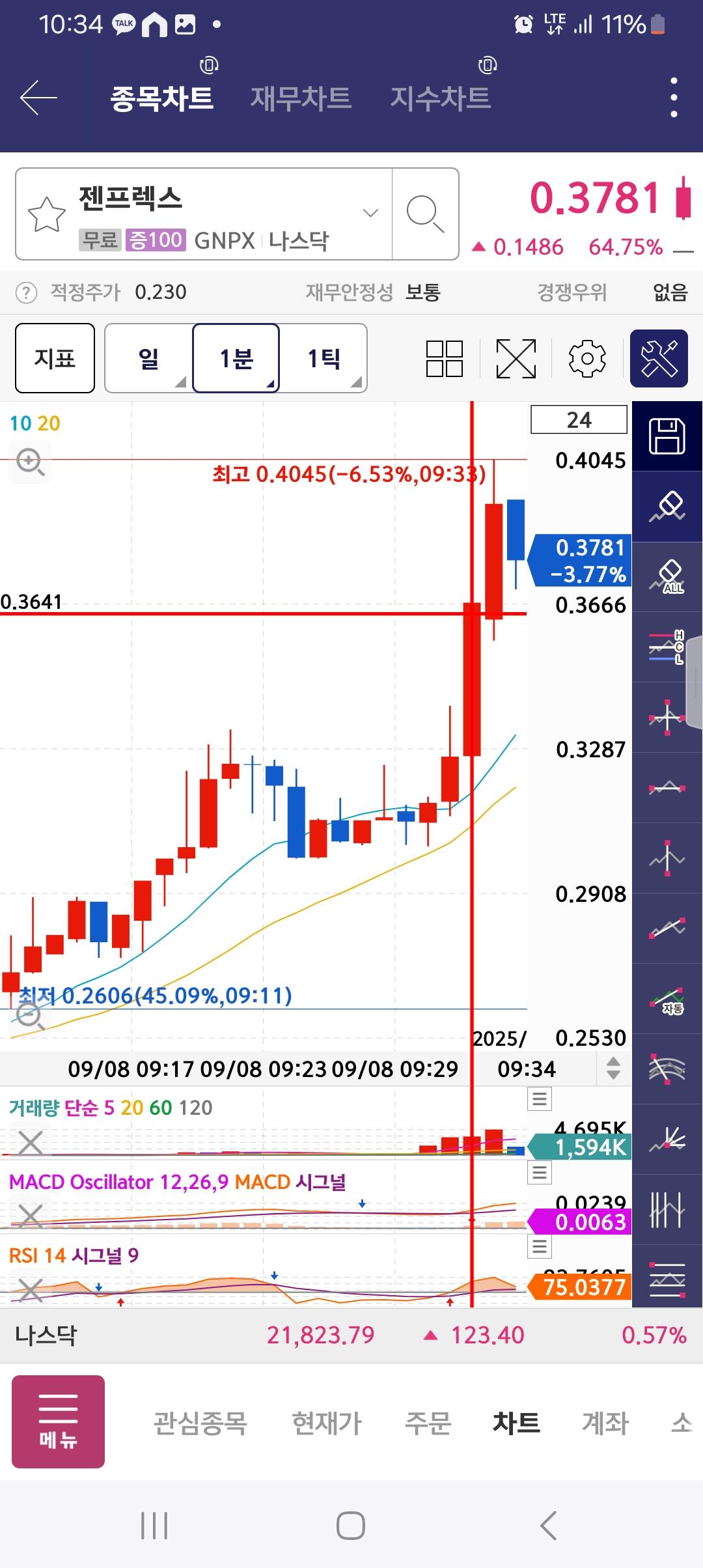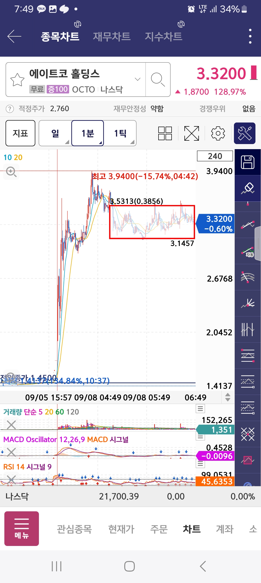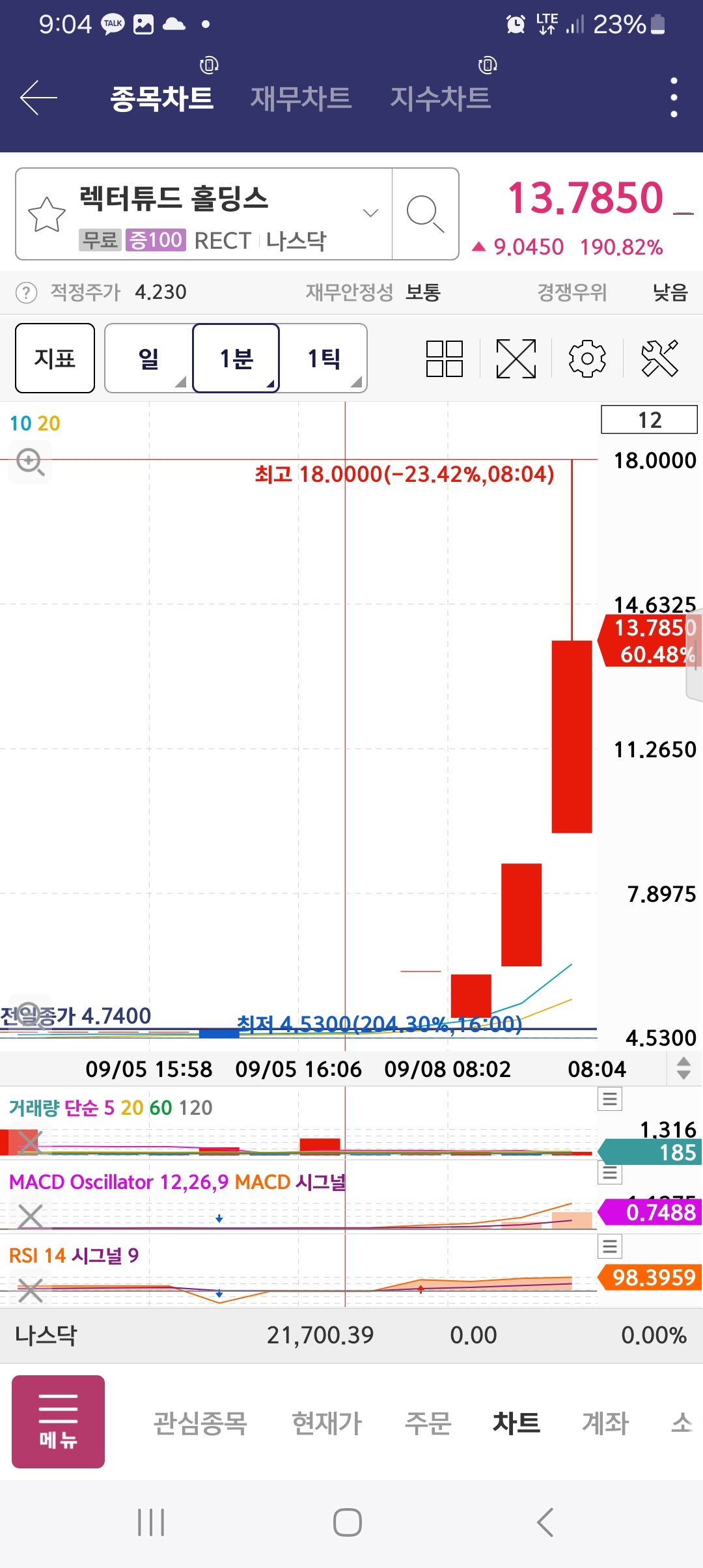 5시에 시작이후 박스 그린 뒤에 상승. 계속해서 1시반까지 상승함