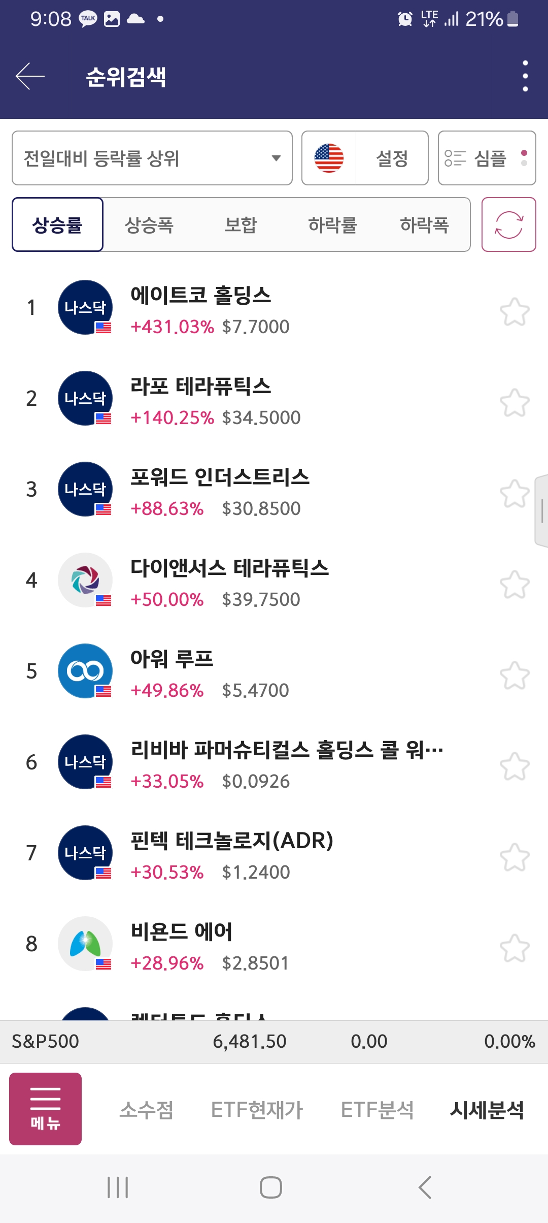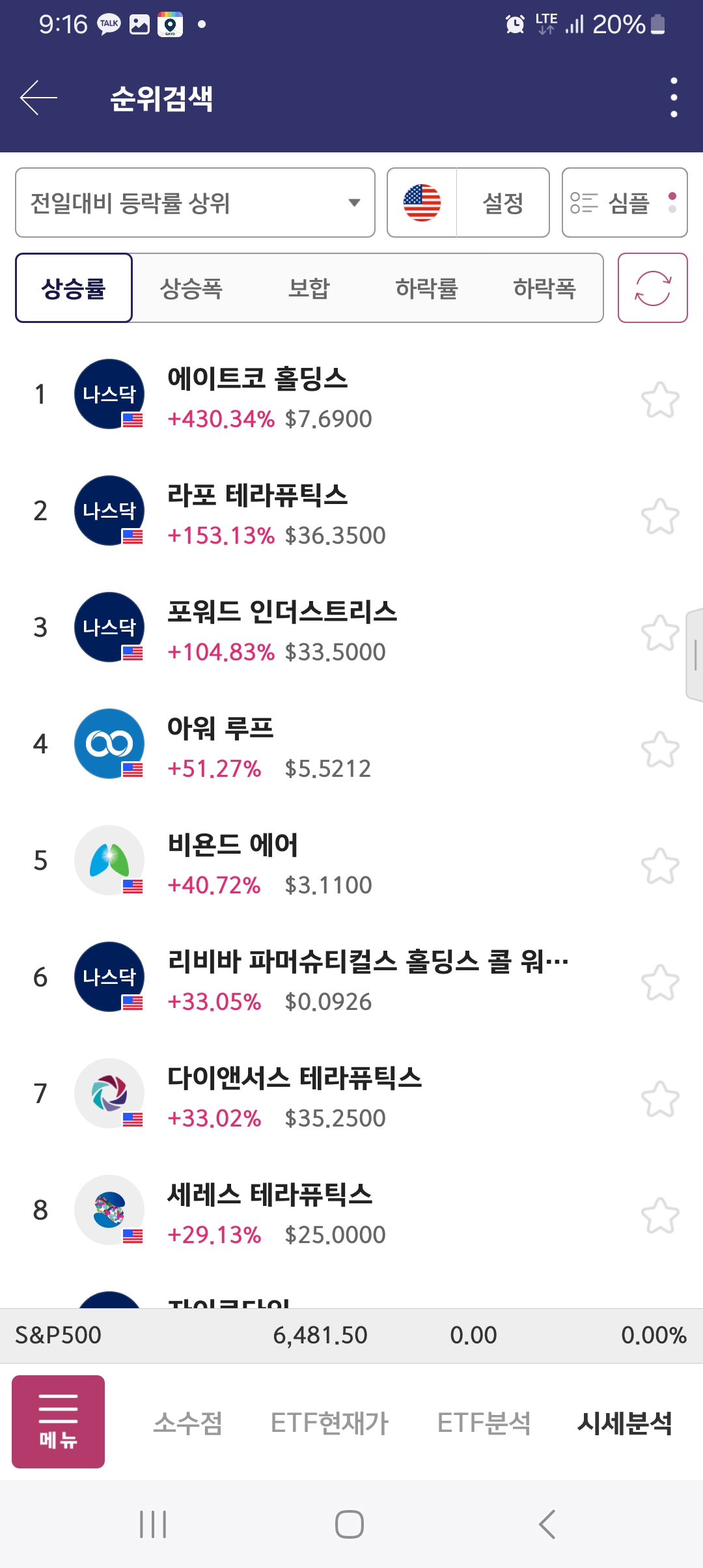 특징적인 종목 존재함