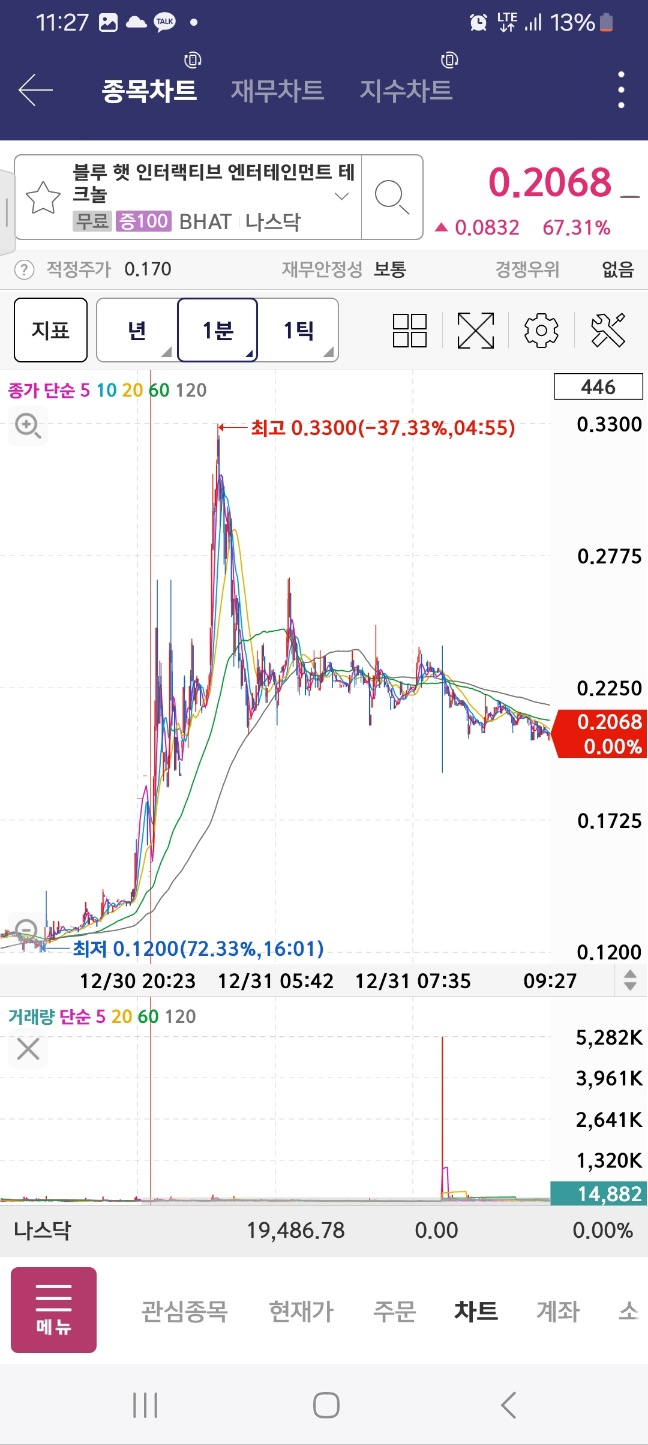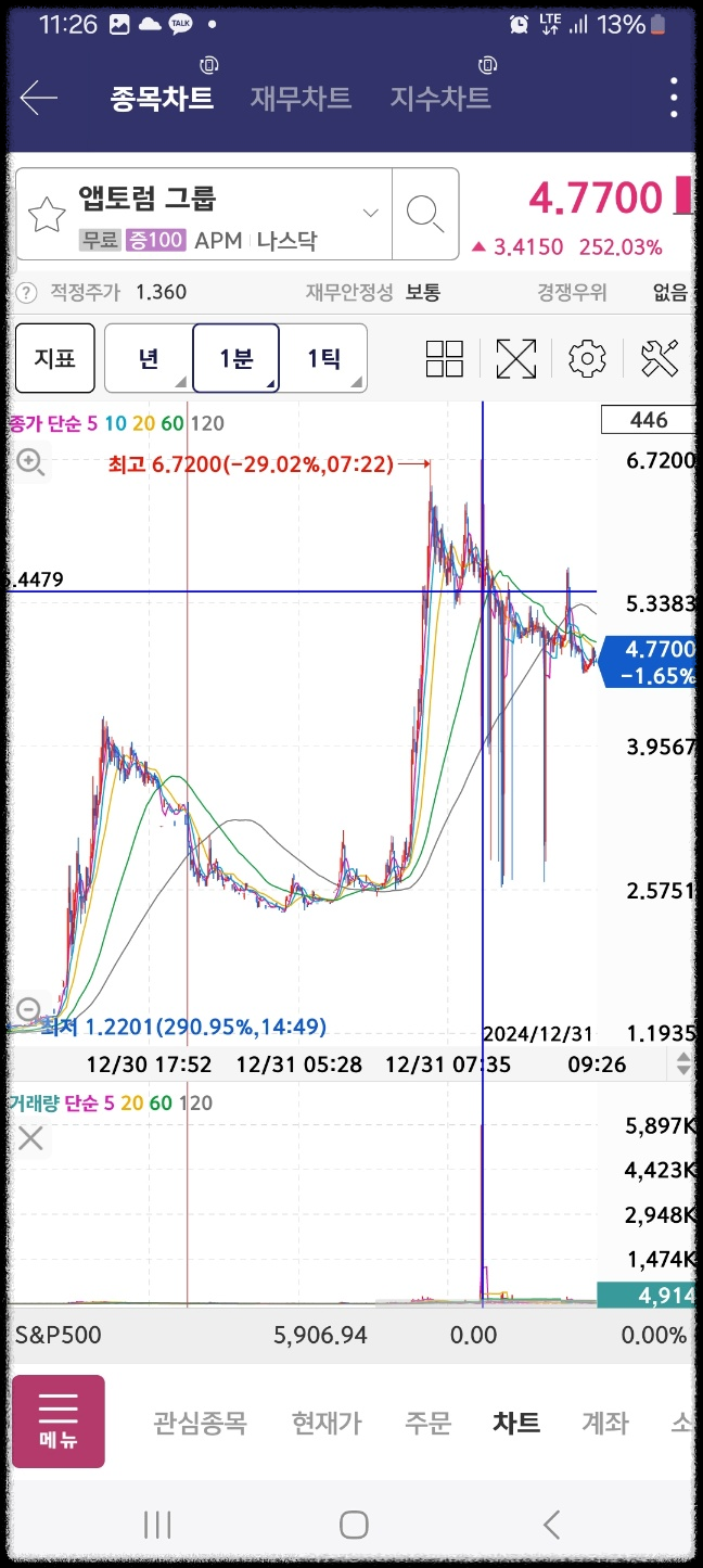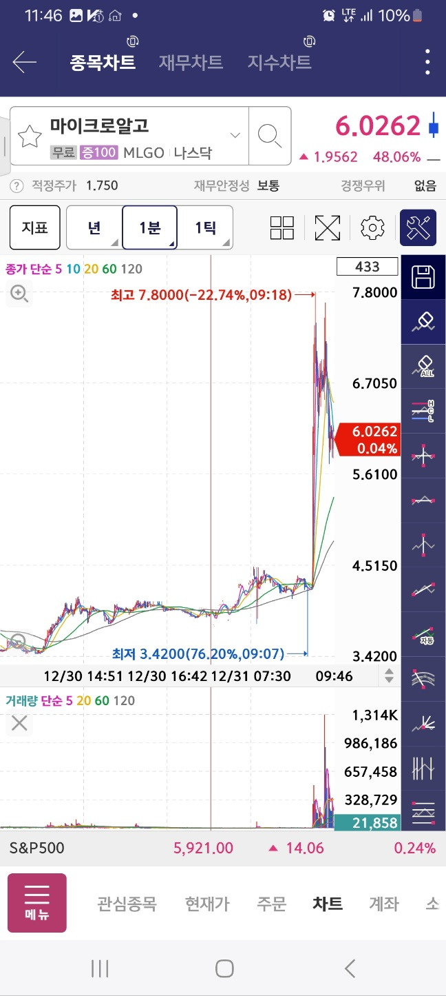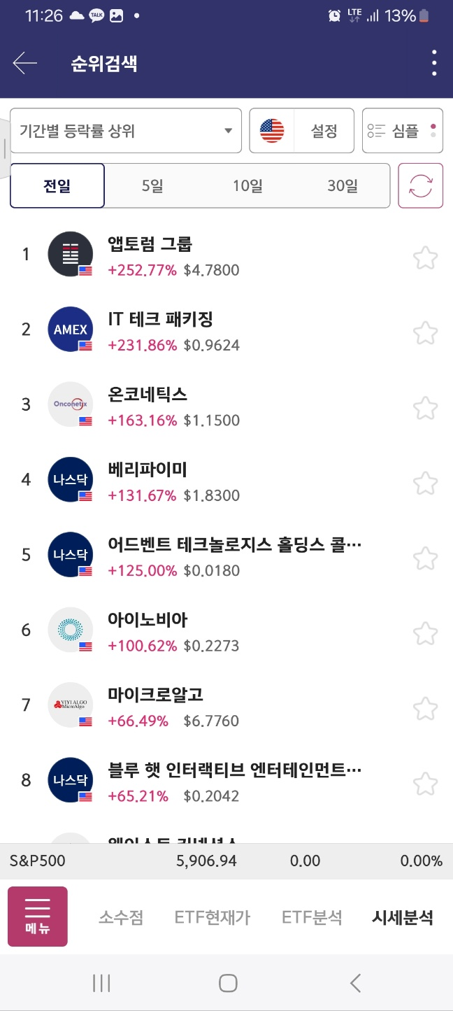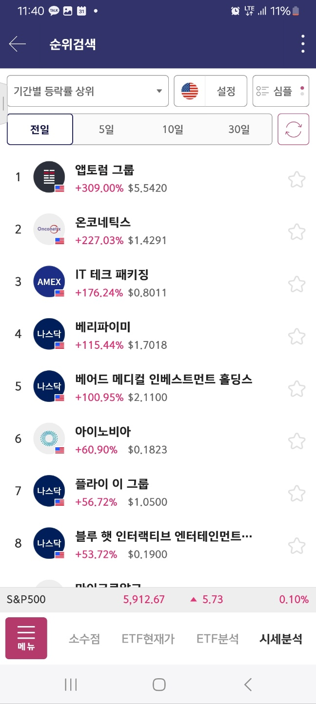 10분 기준 : 앱토럼그룹, 온코네틱스 [상승] / 베리파이미, 어브벤트, 아이노비아, 마이크로알고 [하락]