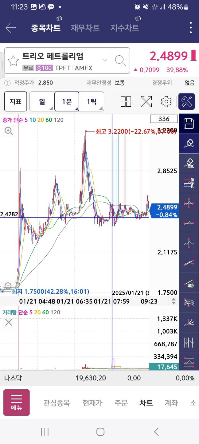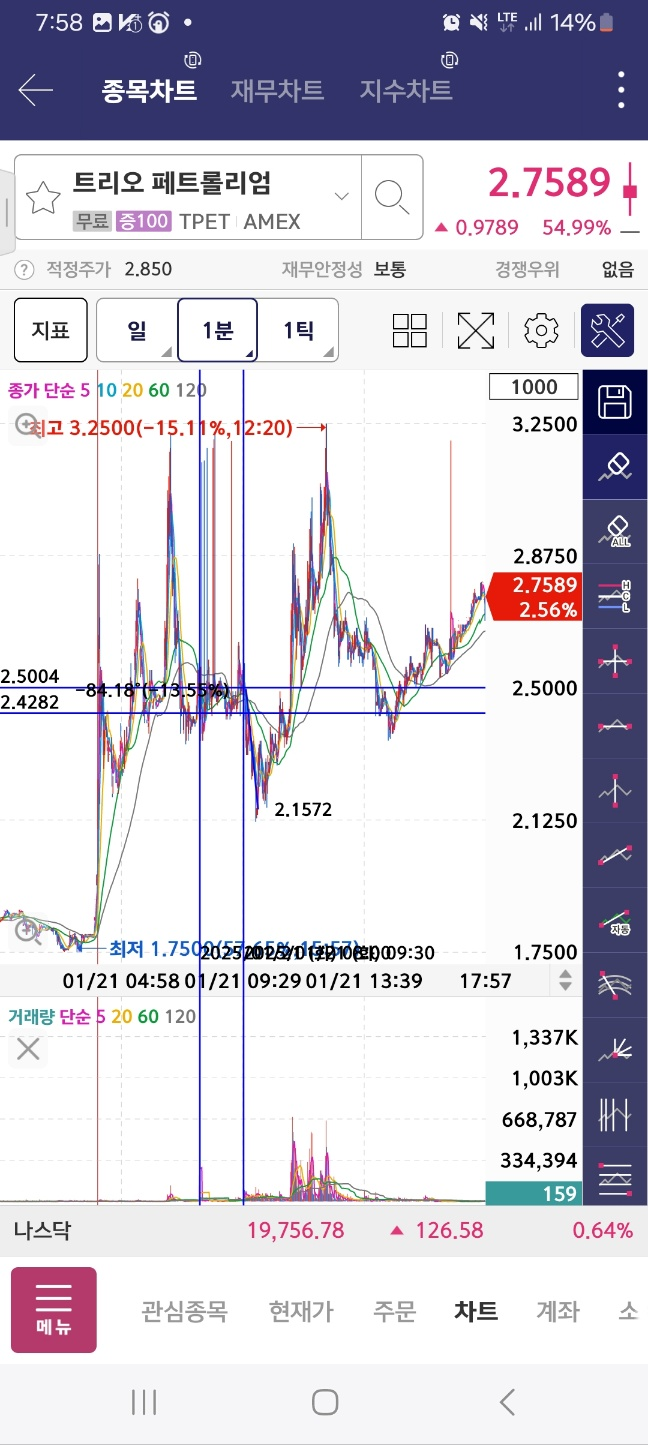 헬리우스의 경우 장 초방 상승하다가 급격히 하락한다.