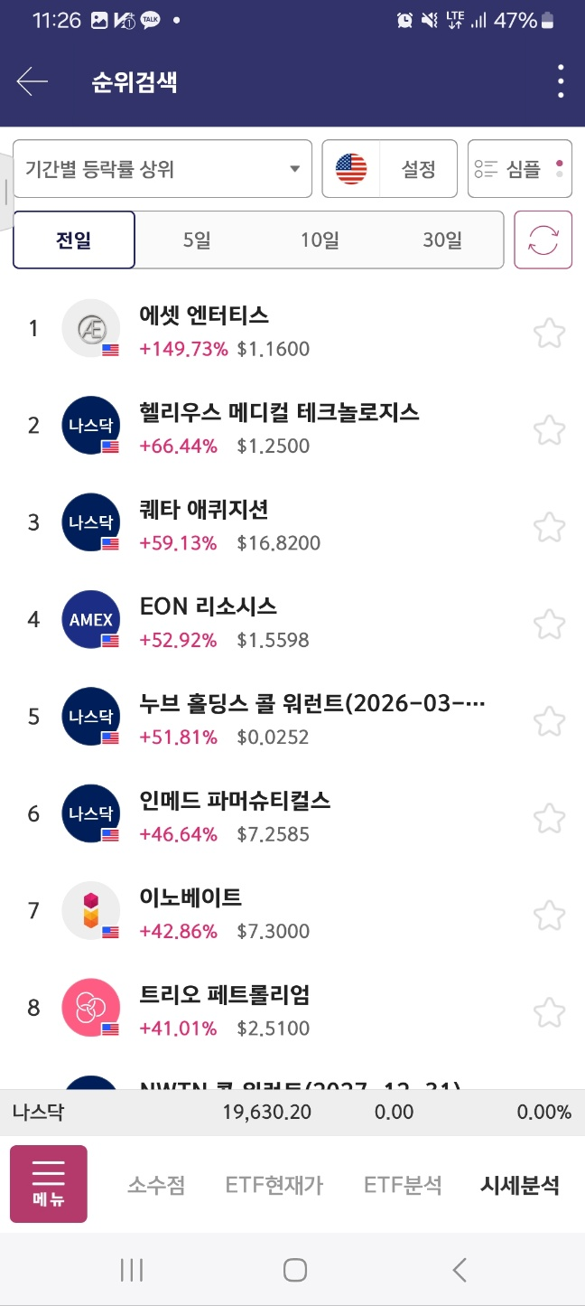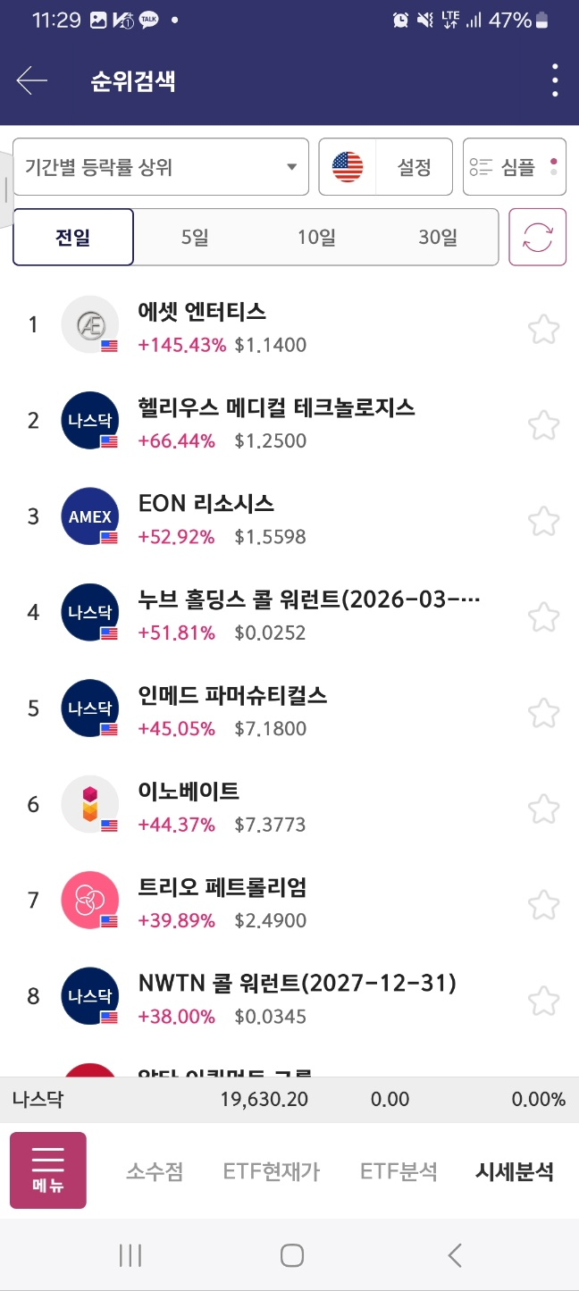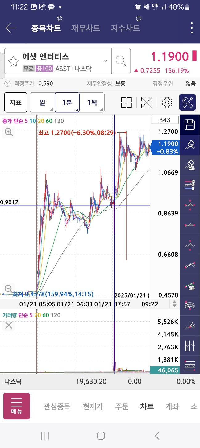 개장 후 5분정도 상승 후 마감한 헬리. 에셋은 개장 후 하락하다가 1회 상승한다. 다시 하락한다.
