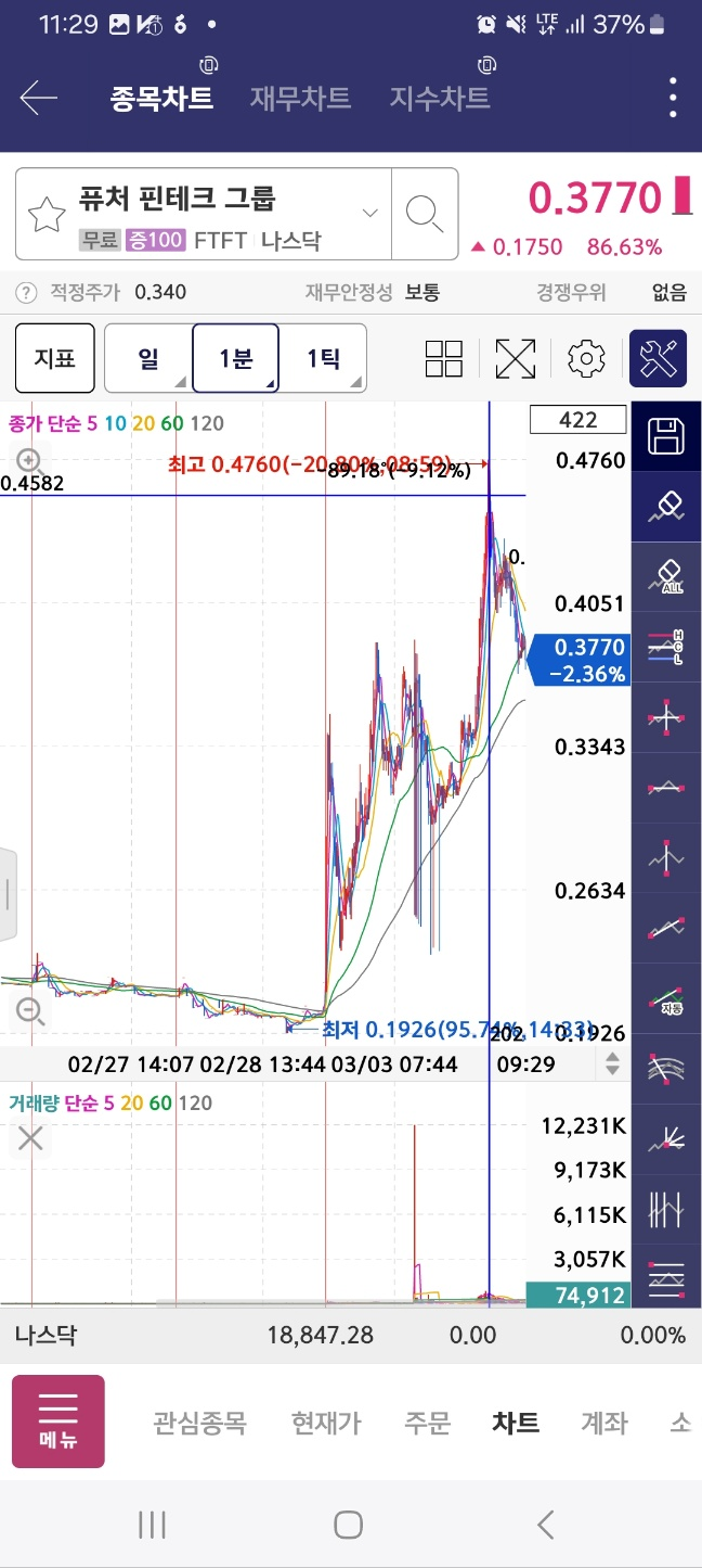 11시에 올랐던 두 종목 모두 개장 후 급락한다.