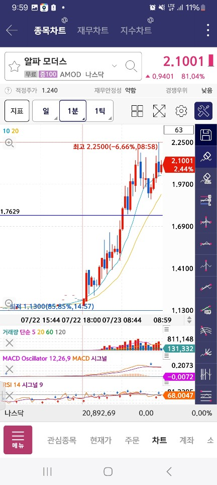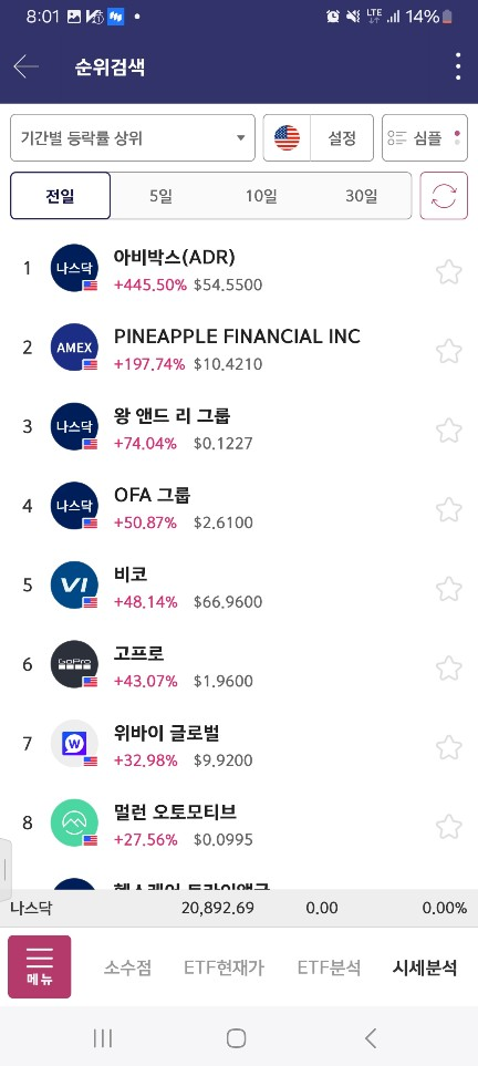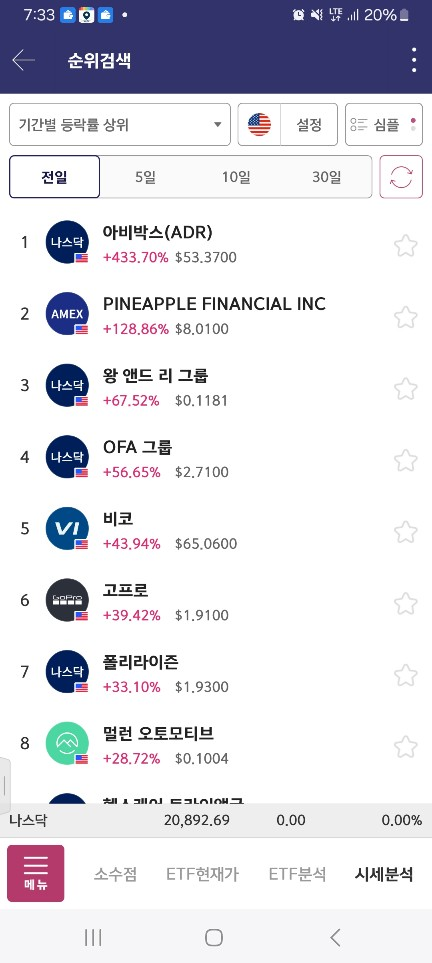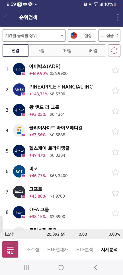 8시 종목 / 이날은 위를 막아서 60-100 이런 종목은 기대하기 어렵고 수익나면 짧게짧게 팔아야했다.