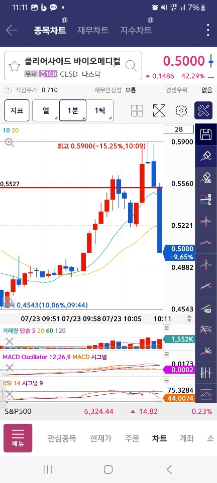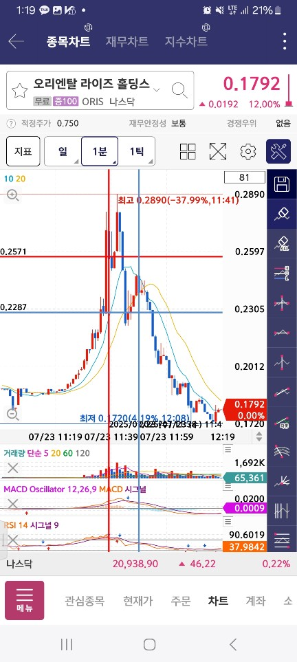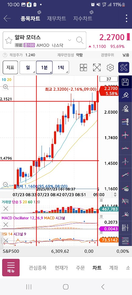 개장하고 60퍼대에서 발견하고 / 거래량 충분해서 들어가본 종목인데 / 해당 지점에서 바로맞음