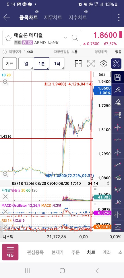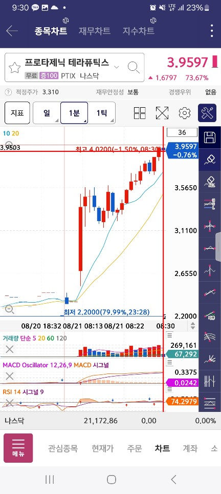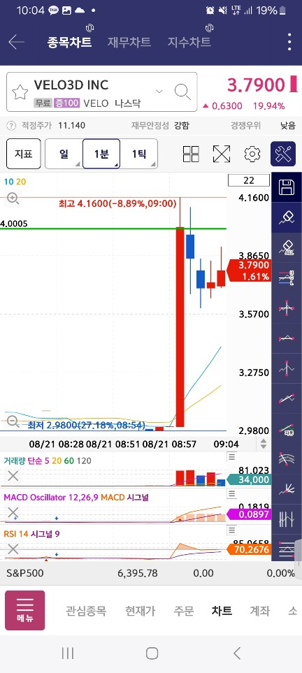 개장하고는 1000k 정도 거래량 들어와야 한다.