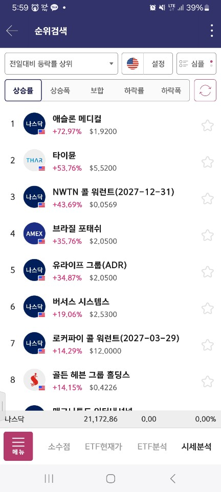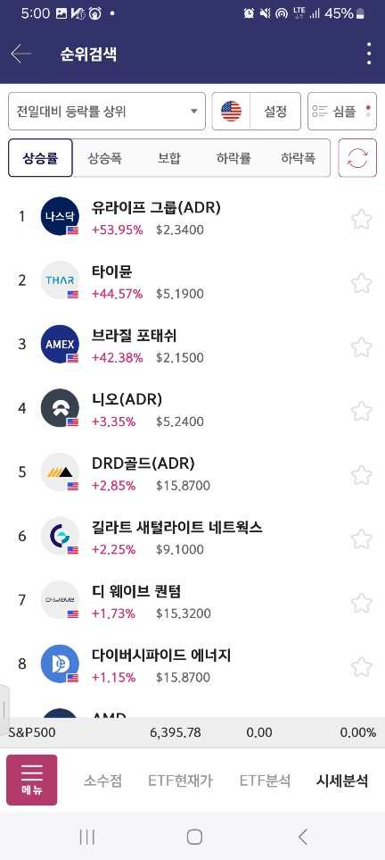 5시에 올라온 종목들은 전날의 나머지것들이었다