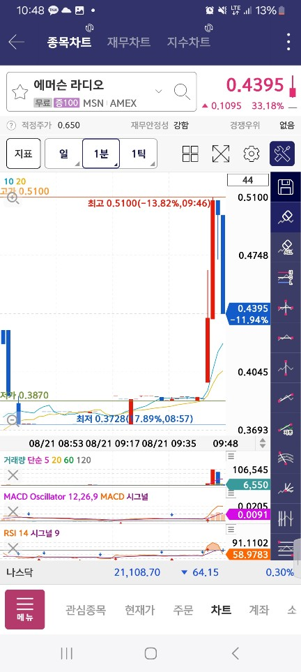 이렇게 밑에서 시작한 경우는 주의하고 가능하면 3분선에서 많이 하락해서 잡는거 아니면 건들지 마라