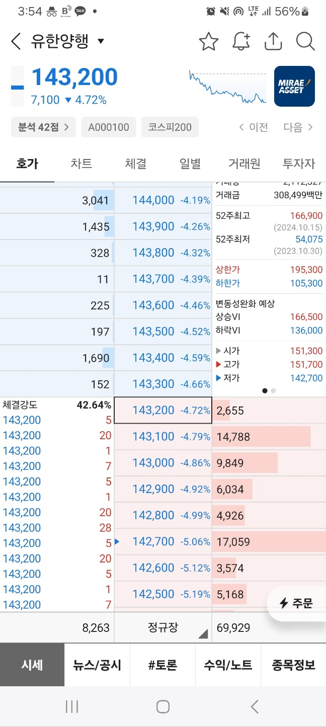 하지만 주식의 가치는 오전부터 하락중이다. 이 글을 작성하는 11시에는 -3.3%까지 하락했다.